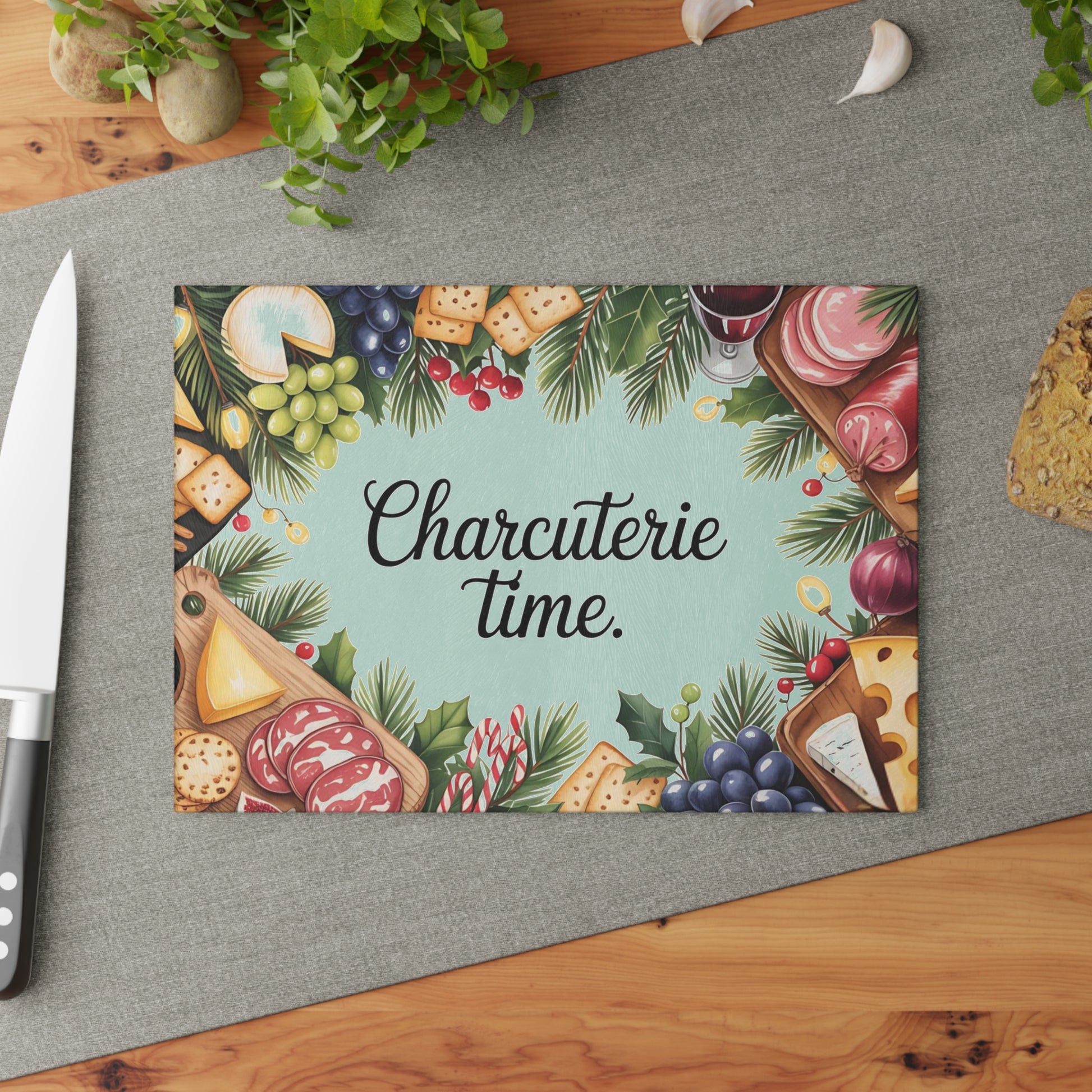 🧀🍇 “Snack Board Time” Glass Cutting Board – Festive Spread Vibes for Your Kitchen