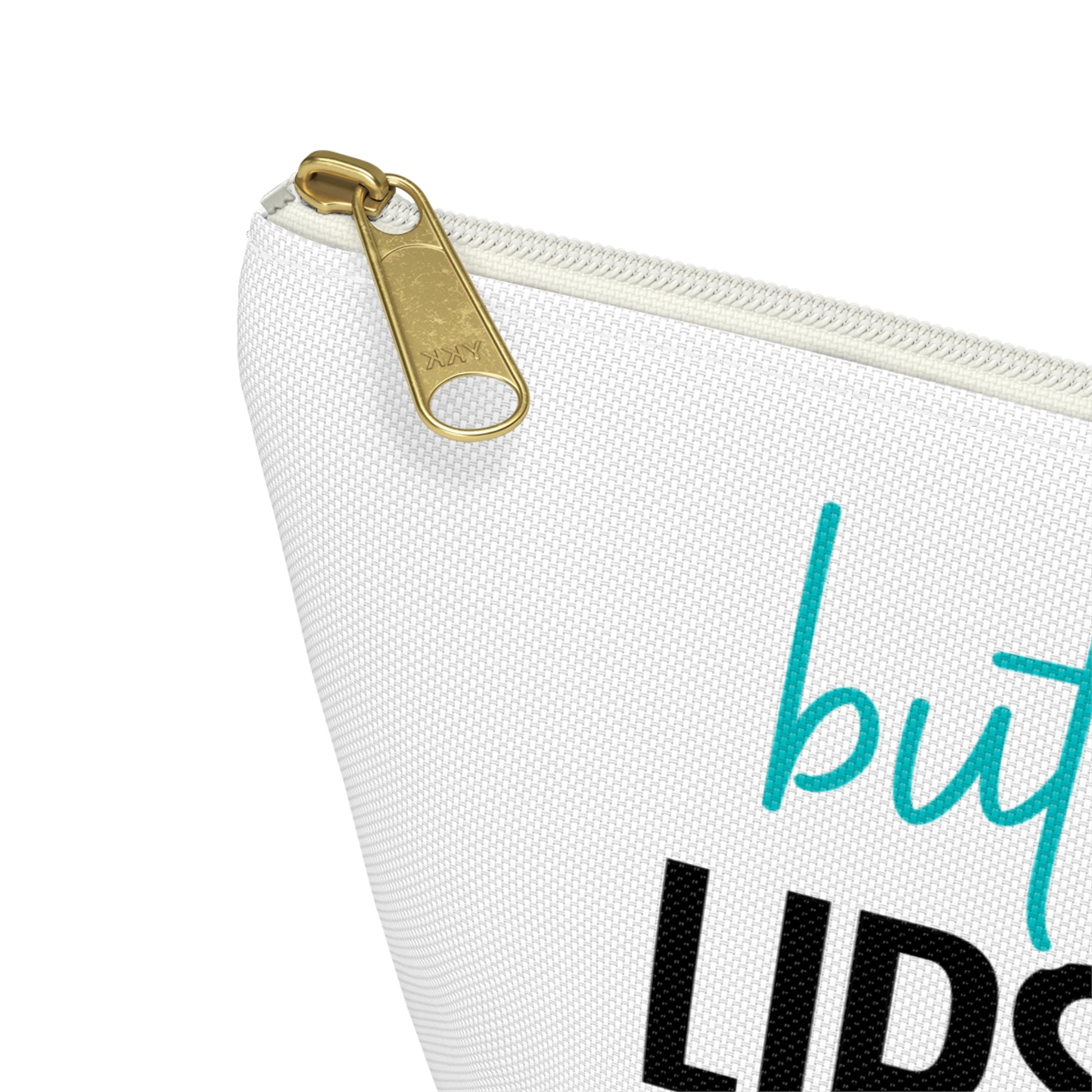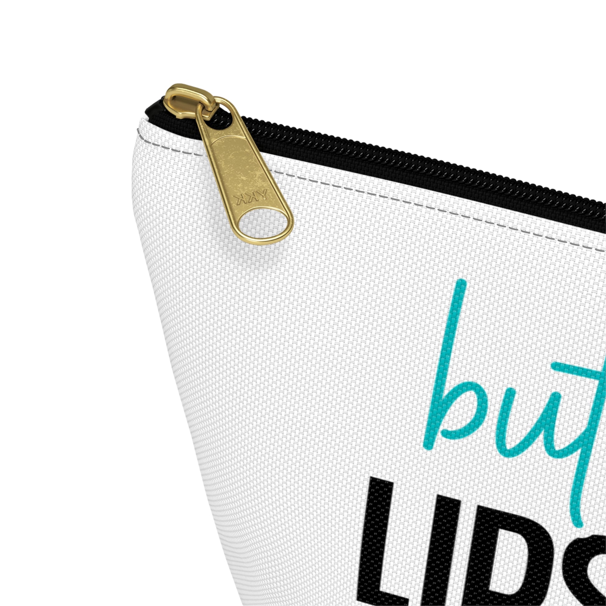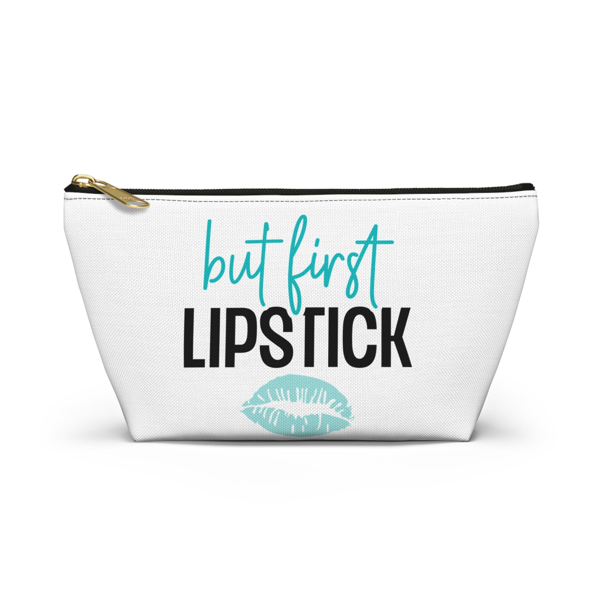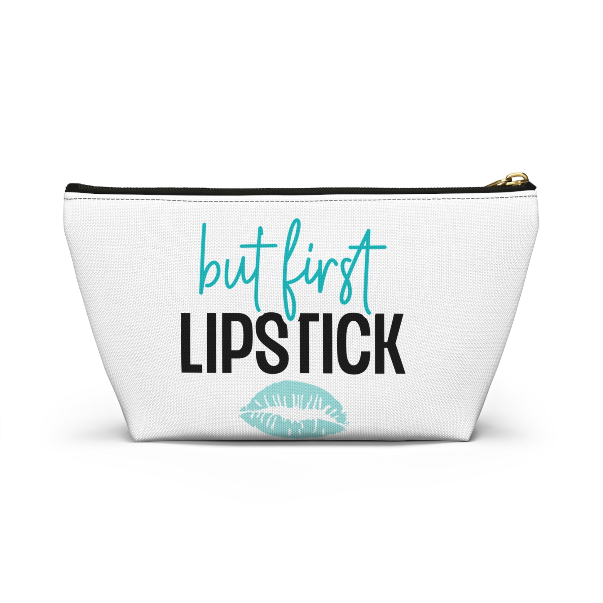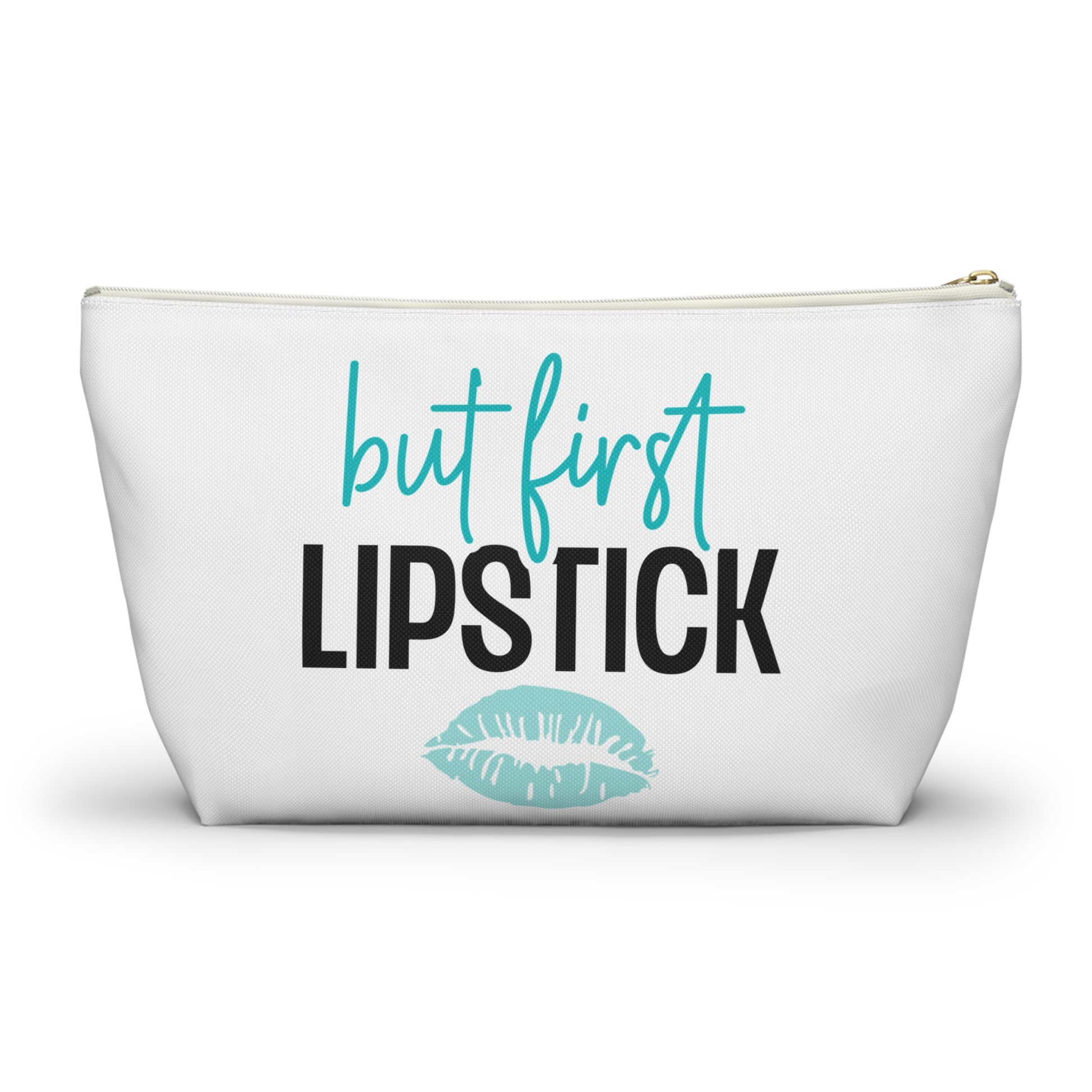 Accessory Pouch – "But First Lipstick" Teal Makeup Bag