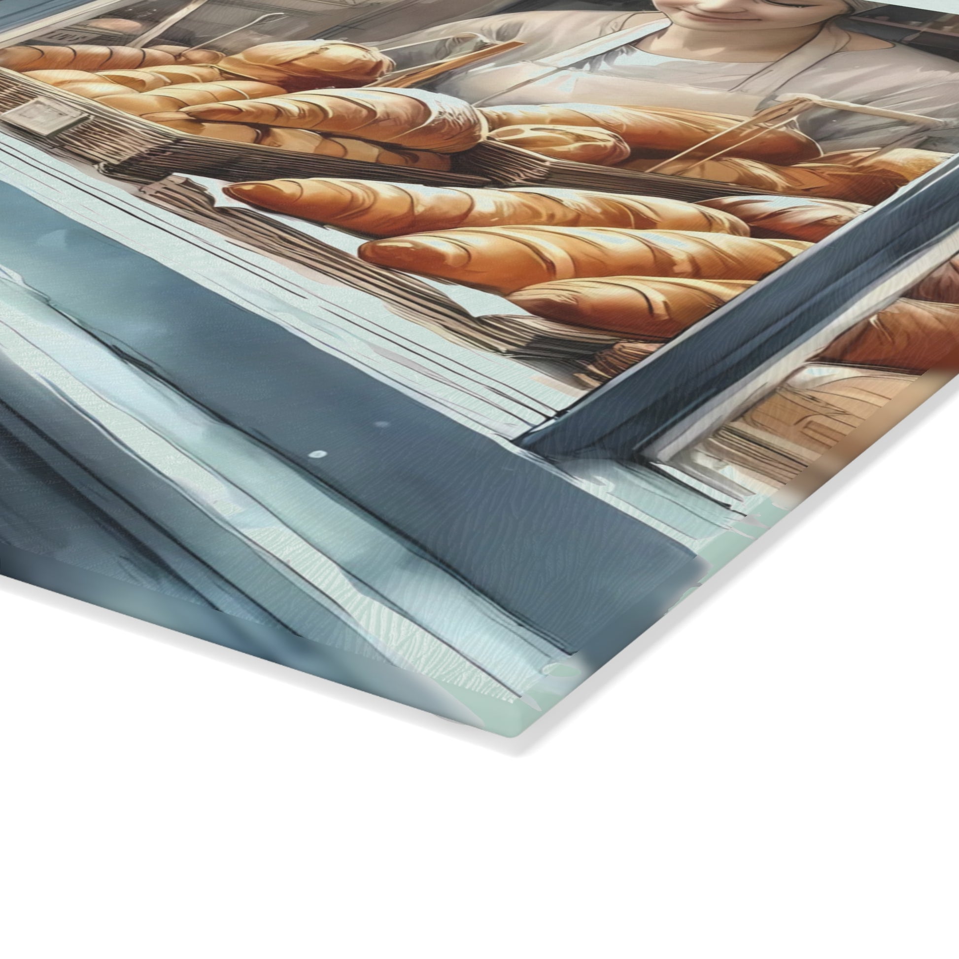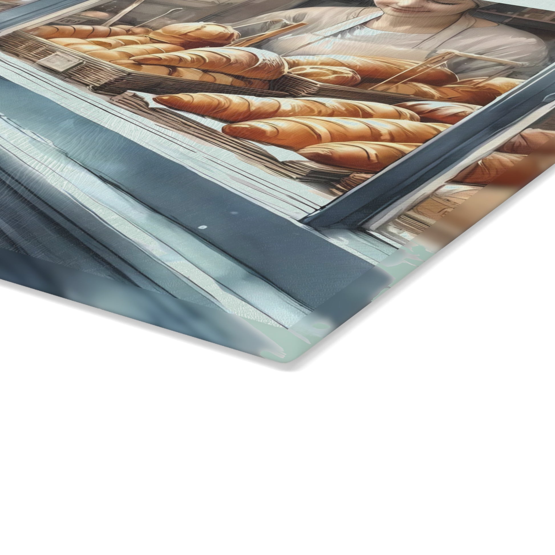 Add a touch of whimsy to your kitchen with this delightful Bakery Scene Cutting Board! Featuring a charming terrier dog licking his chops while gazing longingly at delicious bakery treats displayed in the window, and a cheerful baker smiling at the adorable pup, this design is full of warmth and personality. Perfect for baking enthusiasts, dog lovers, or anyone who enjoys fun and unique kitchen decor.