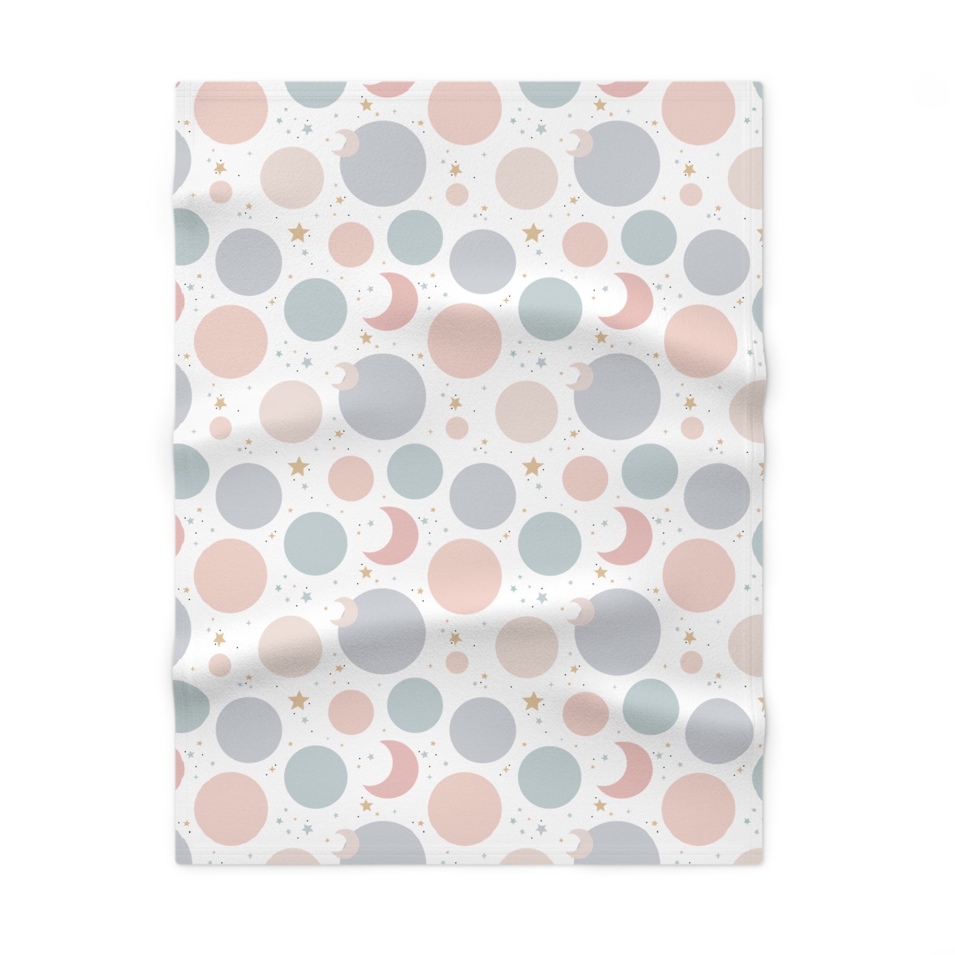 Wrap your little stargazer in cozy nighttime magic. This ultra-soft fleece baby blanket features a dreamy constellation print with pastel moons, stars, and planet-like circles on a deep black sky. Lightweight yet warm and gentle on delicate skin, it’s perfect for stroller rides, tummy time, naps, and bedtime stories—and a gorgeous gift for showers, first birthdays, and the holidays.
