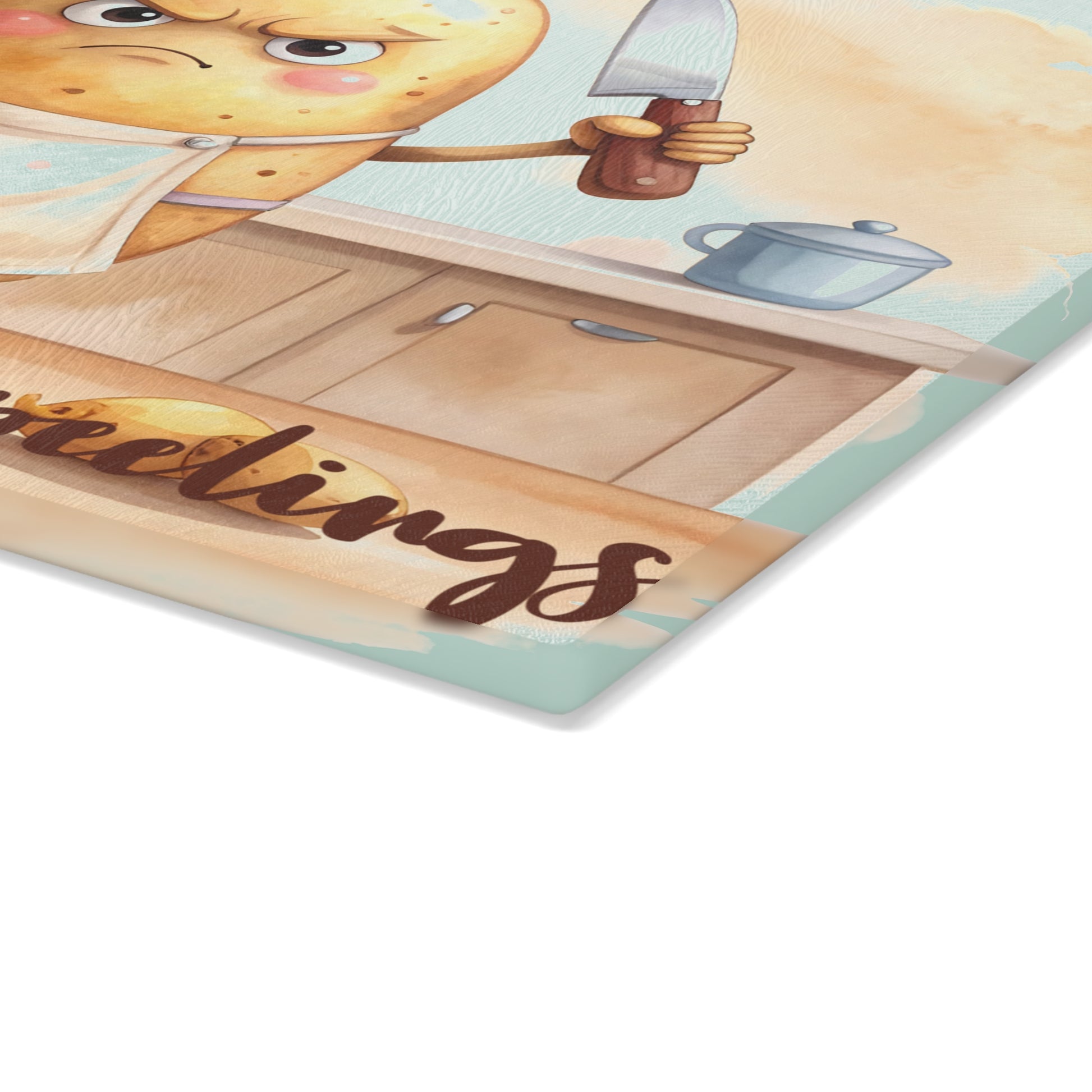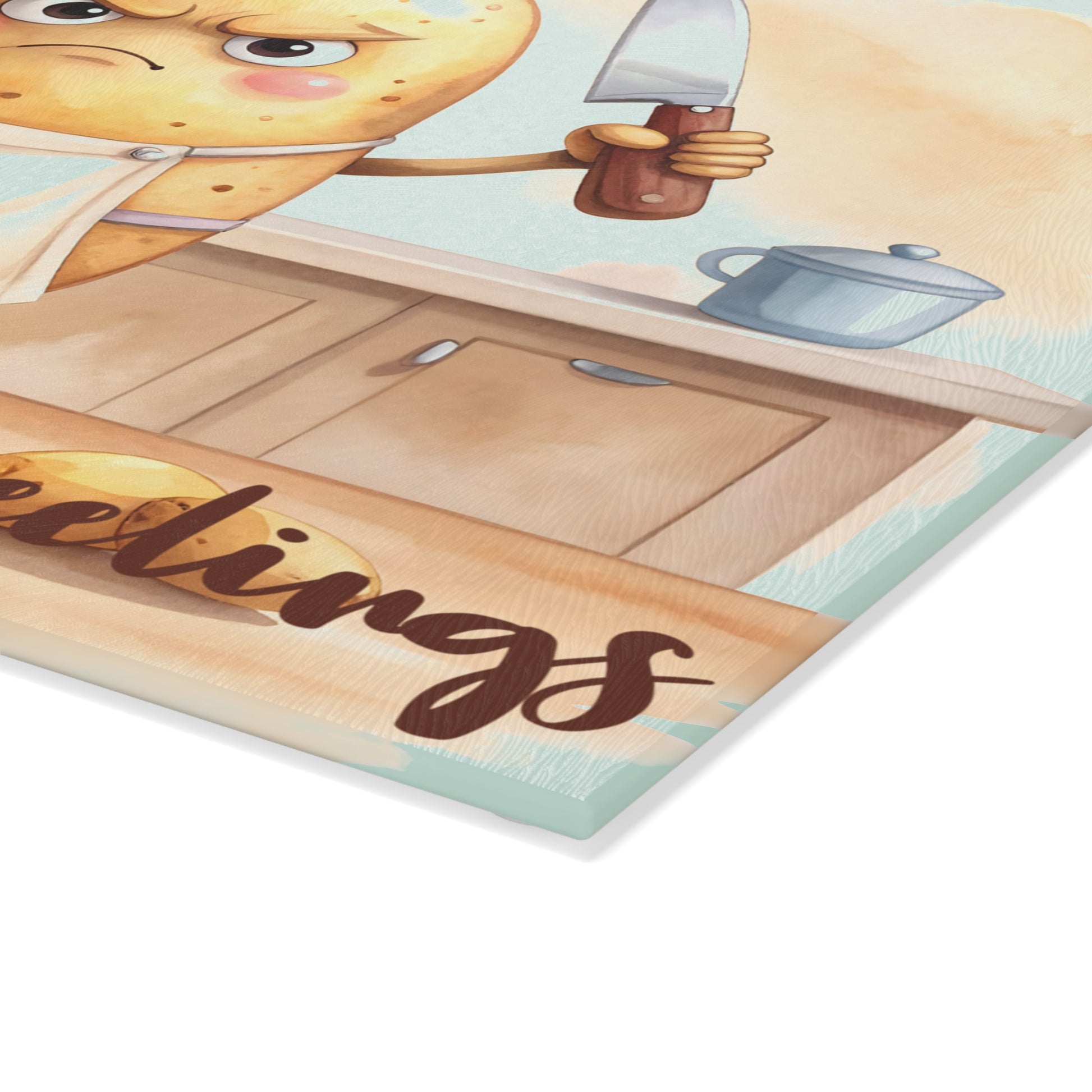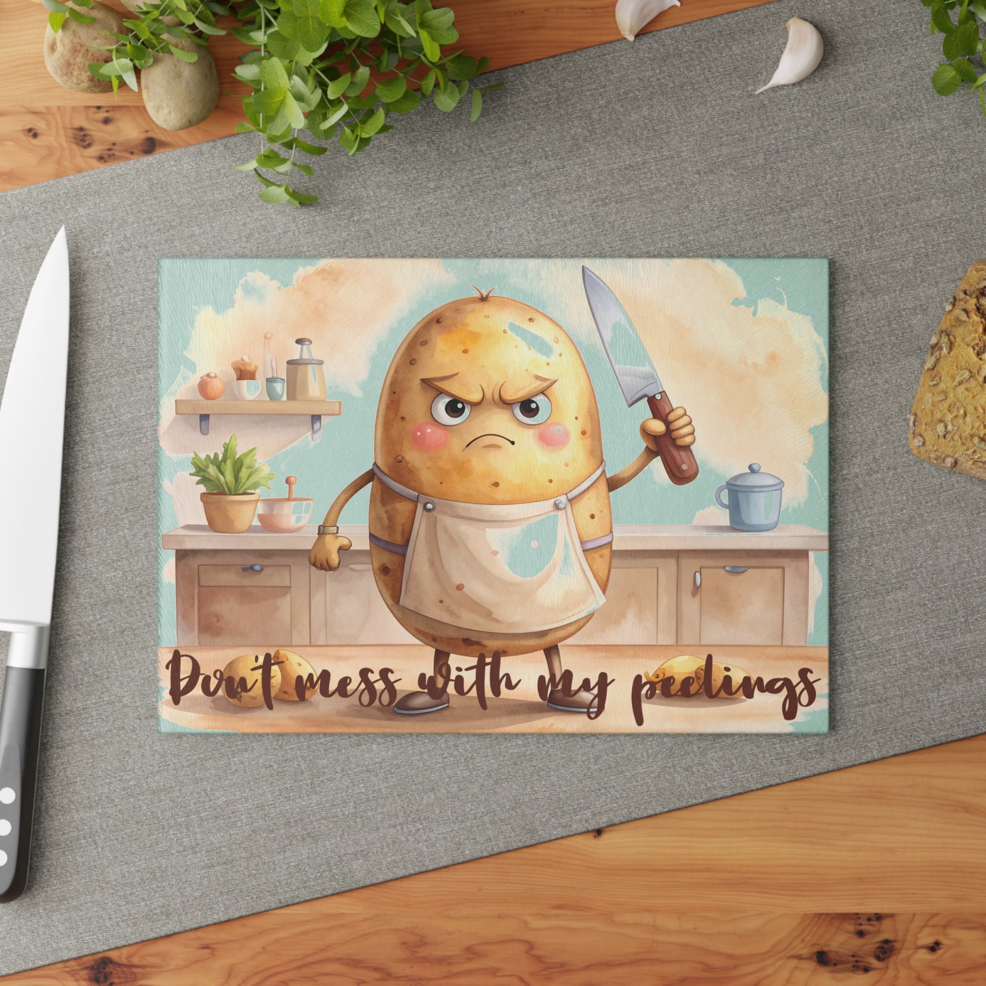 Bring humor and personality to your kitchen with this hilarious tempered glass cutting board featuring a fierce potato letting everyone know: “Don’t Mess With My Peelings.” Perfect for anyone who loves a mix of functionality and laughter, this board will make meal prep and entertaining unforgettable.