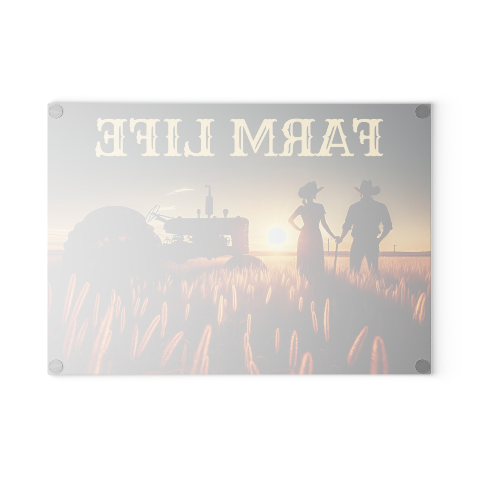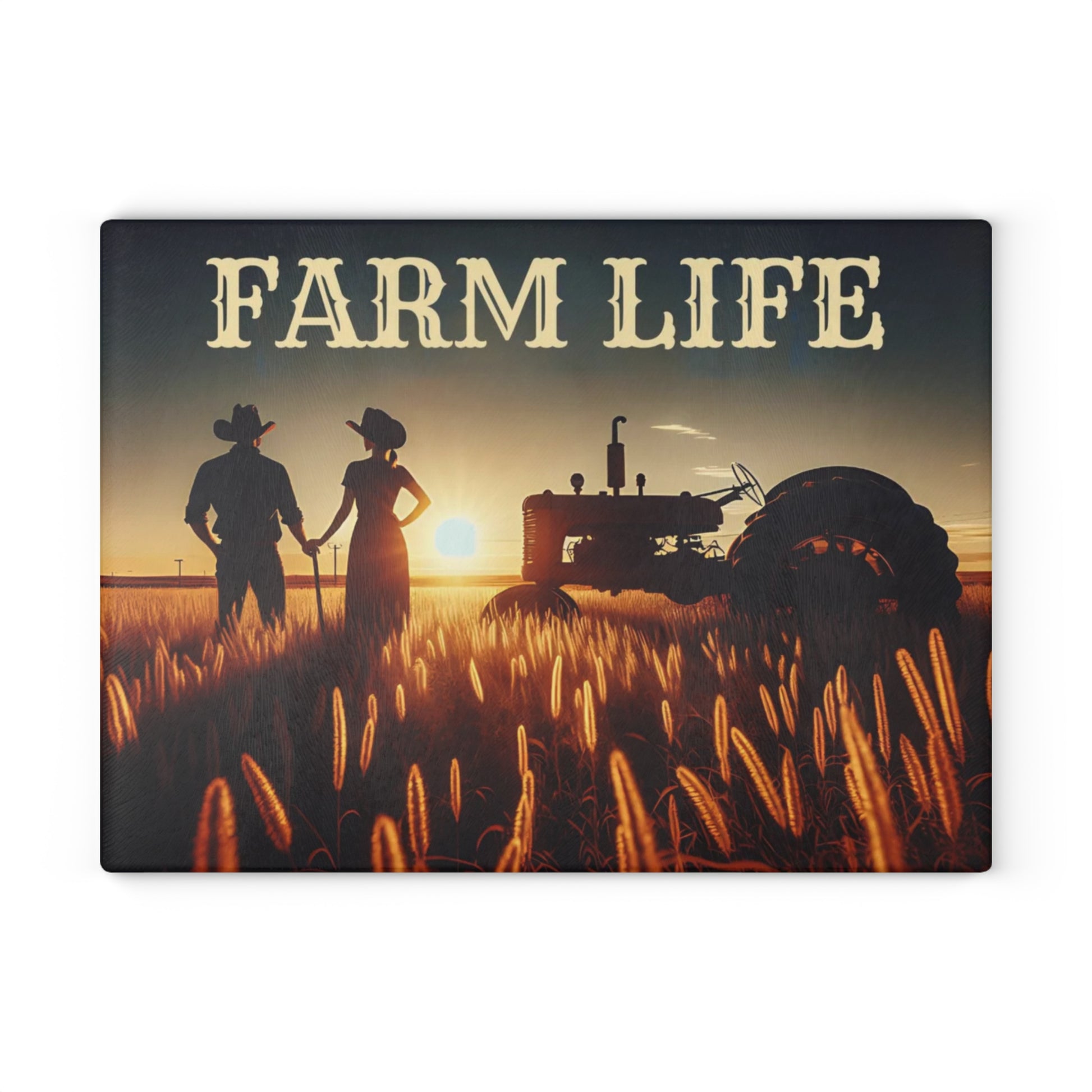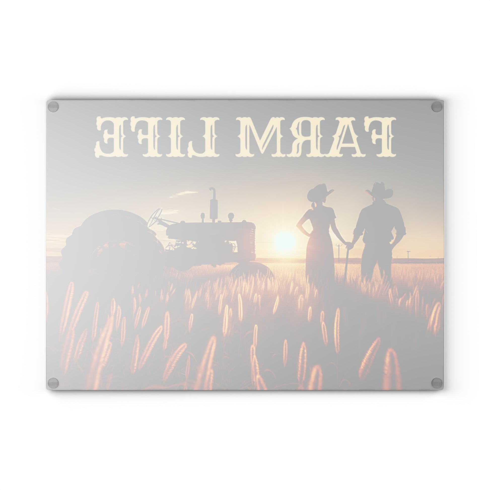 Farm Life Glass Cutting Board – Rustic Countryside Kitchen Art