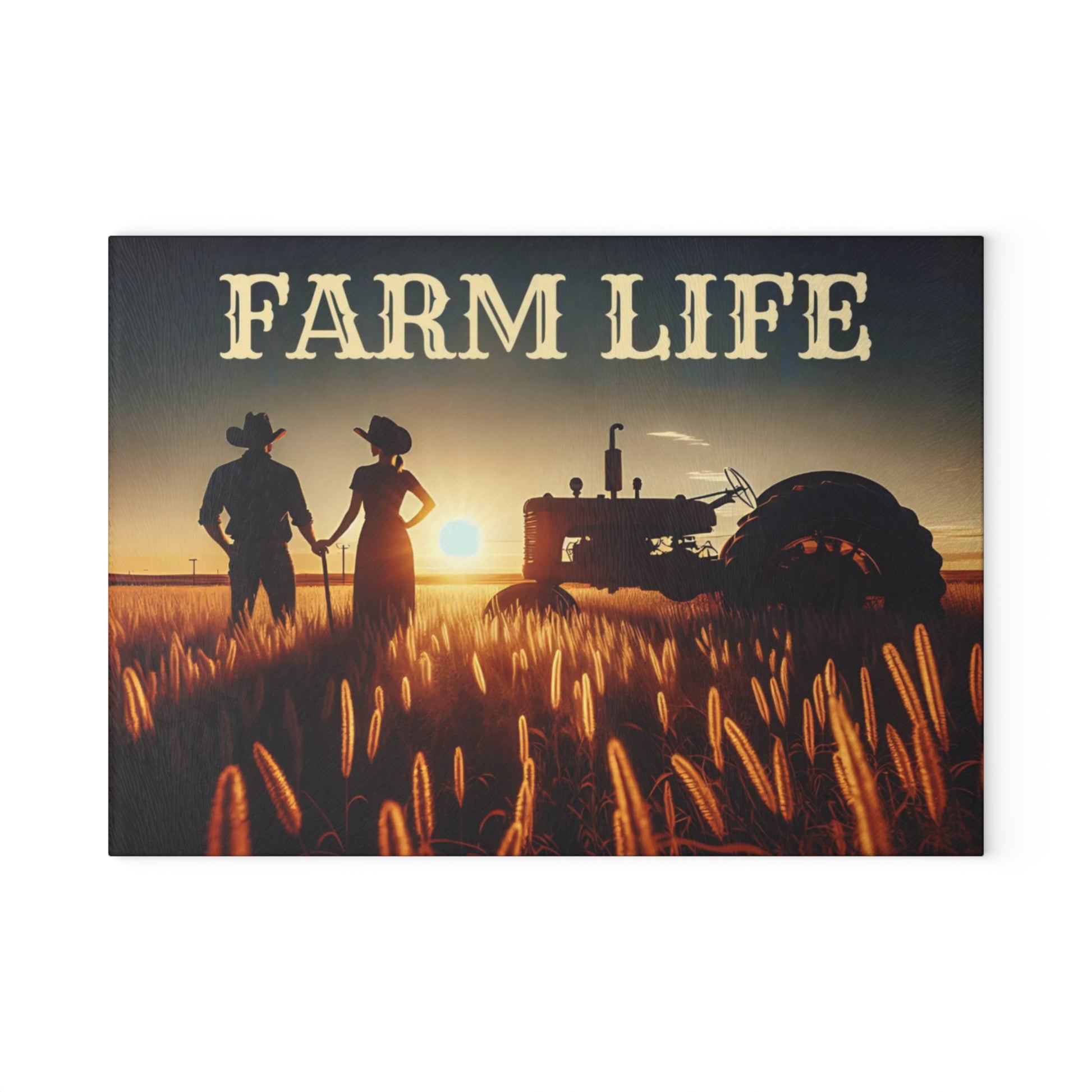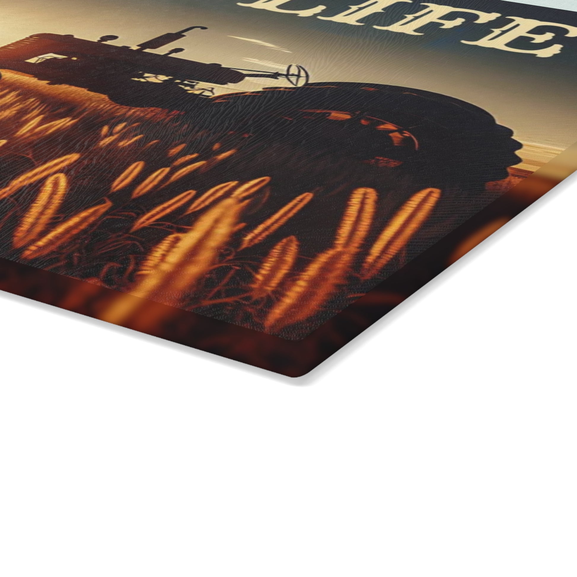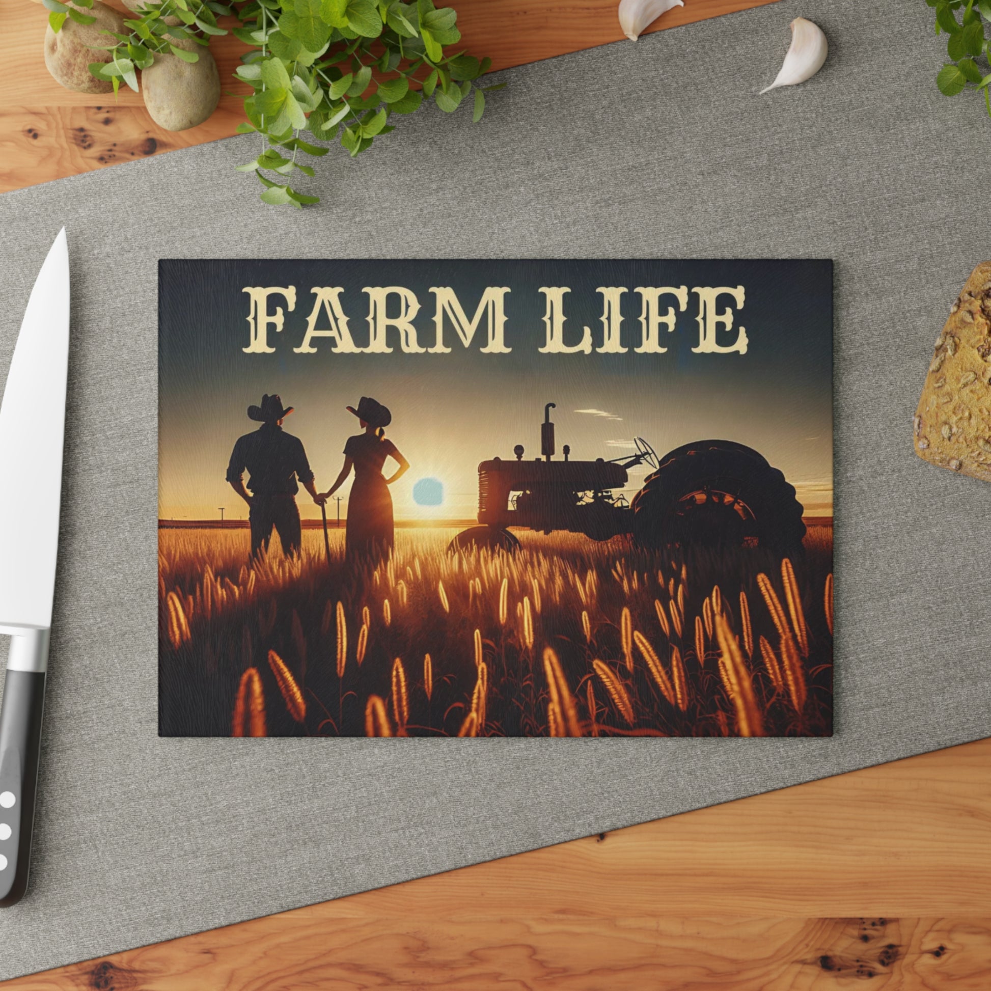 Farm Life Glass Cutting Board – Rustic Countryside Kitchen Art