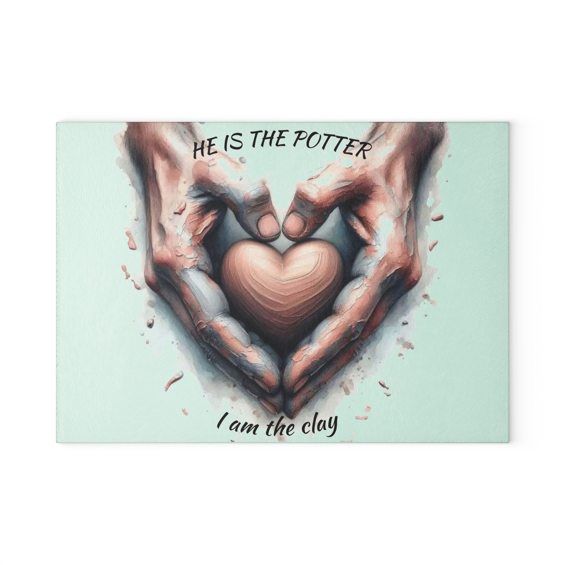 🤎 He Is the Potter – Inspirational Faith Tempered Glass Cutting Board