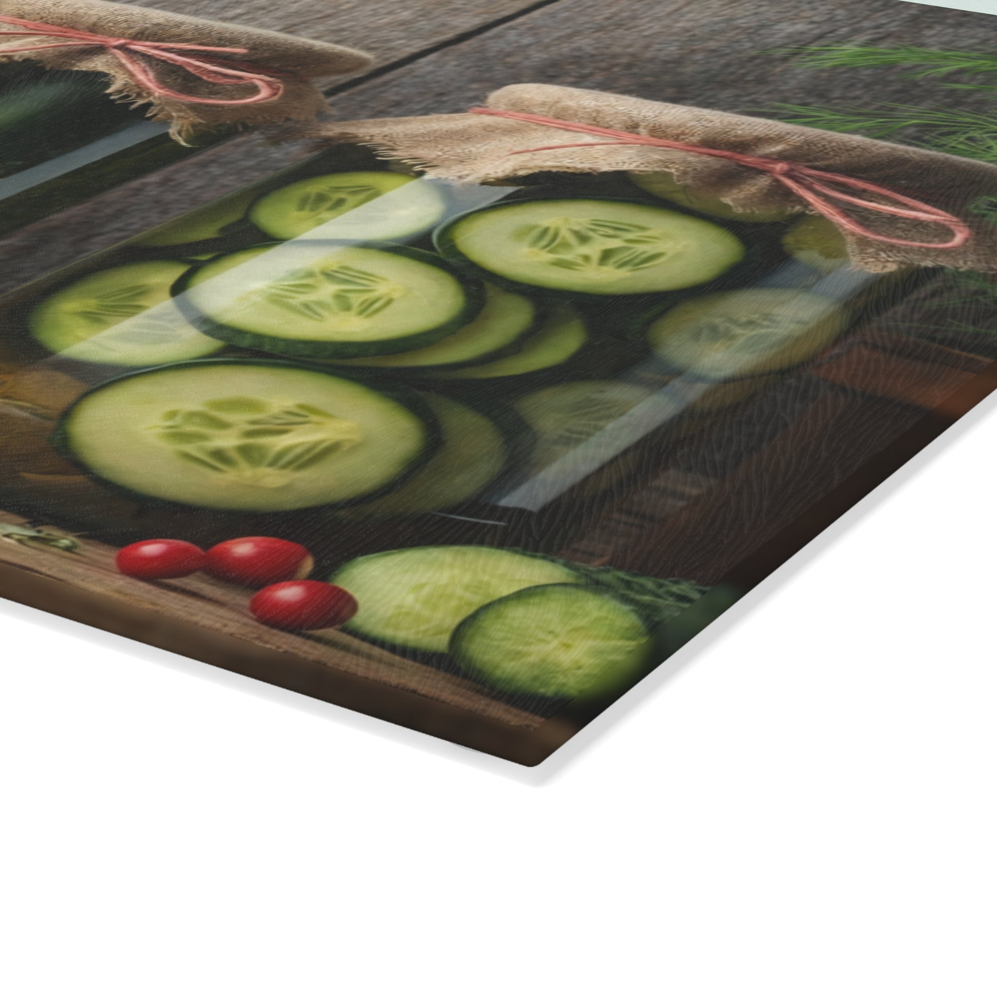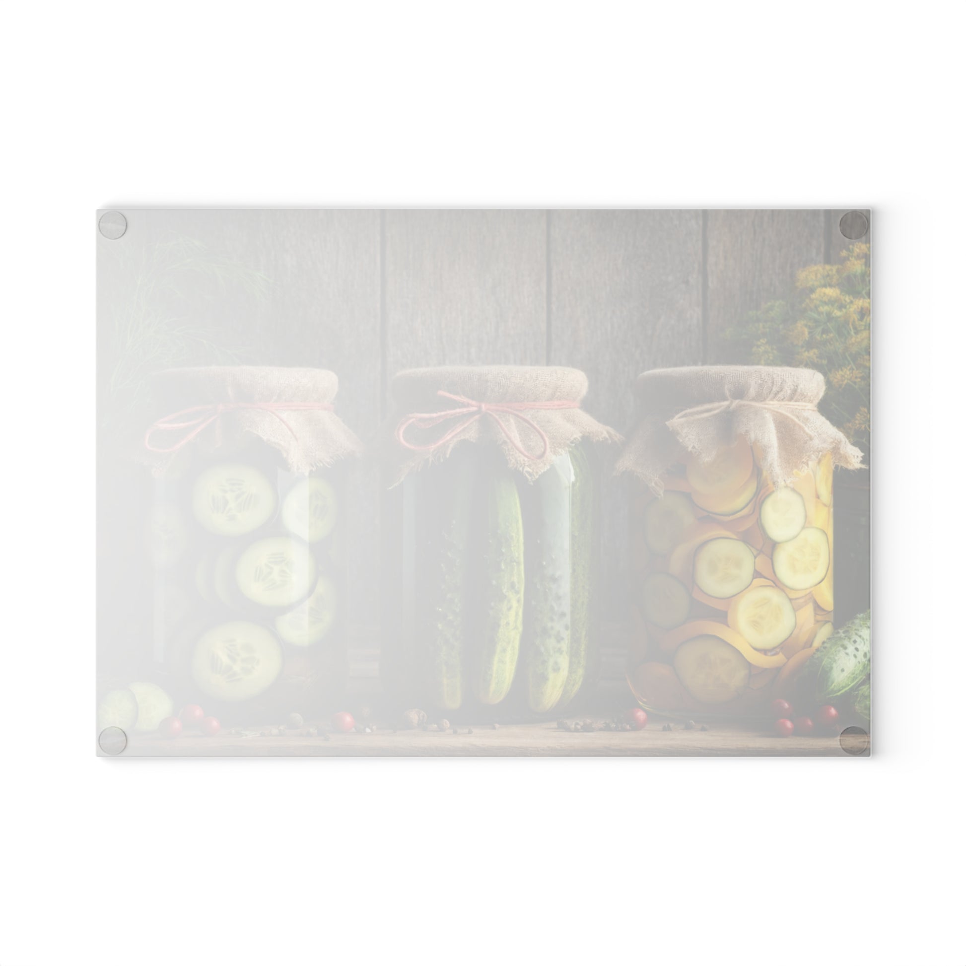 Rustic Pickle Jar Glass Cutting Board – Farmhouse Kitchen Food Art Display