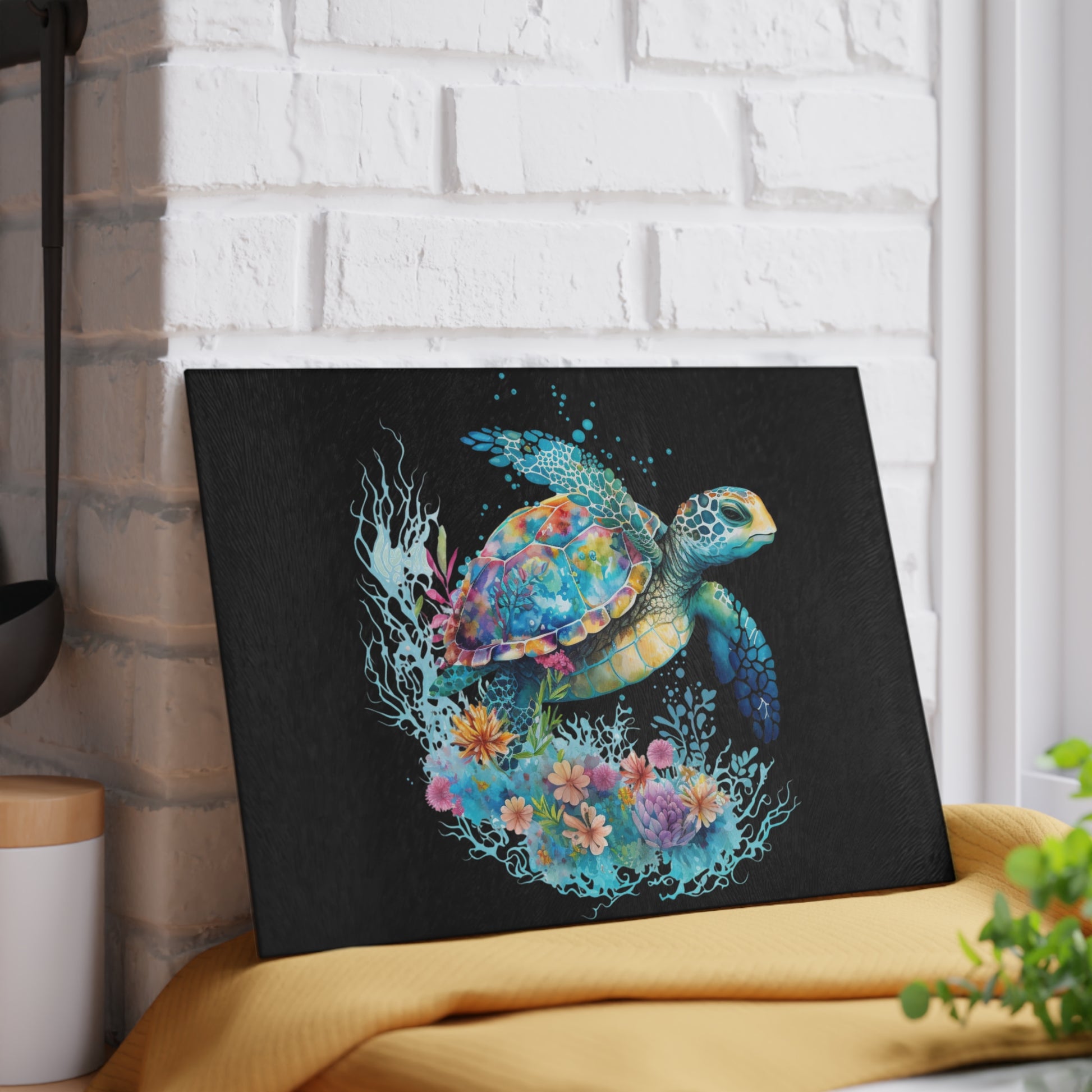Sea Turtle Glass Cutting Board | Coastal Ocean Vibes Kitchen Decor