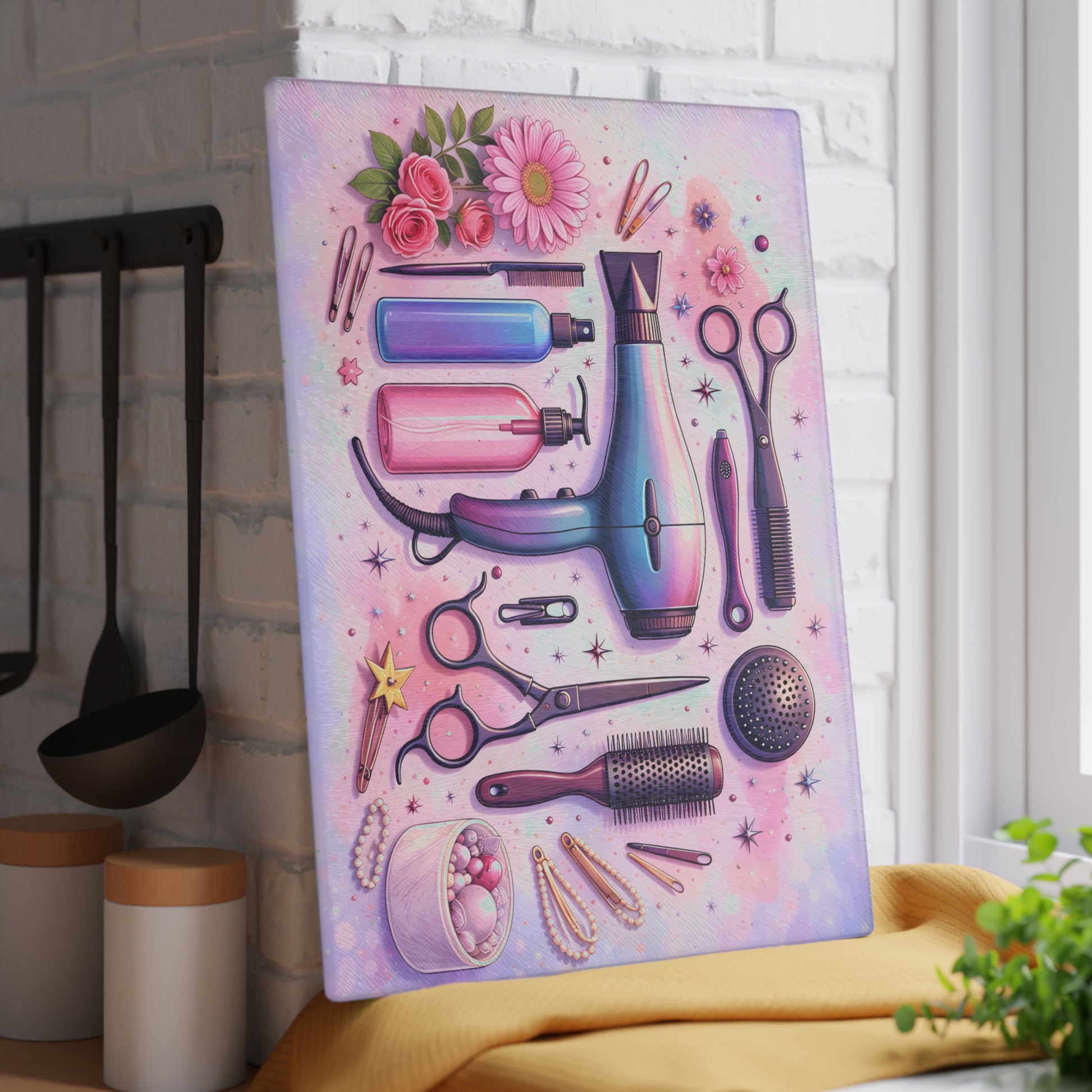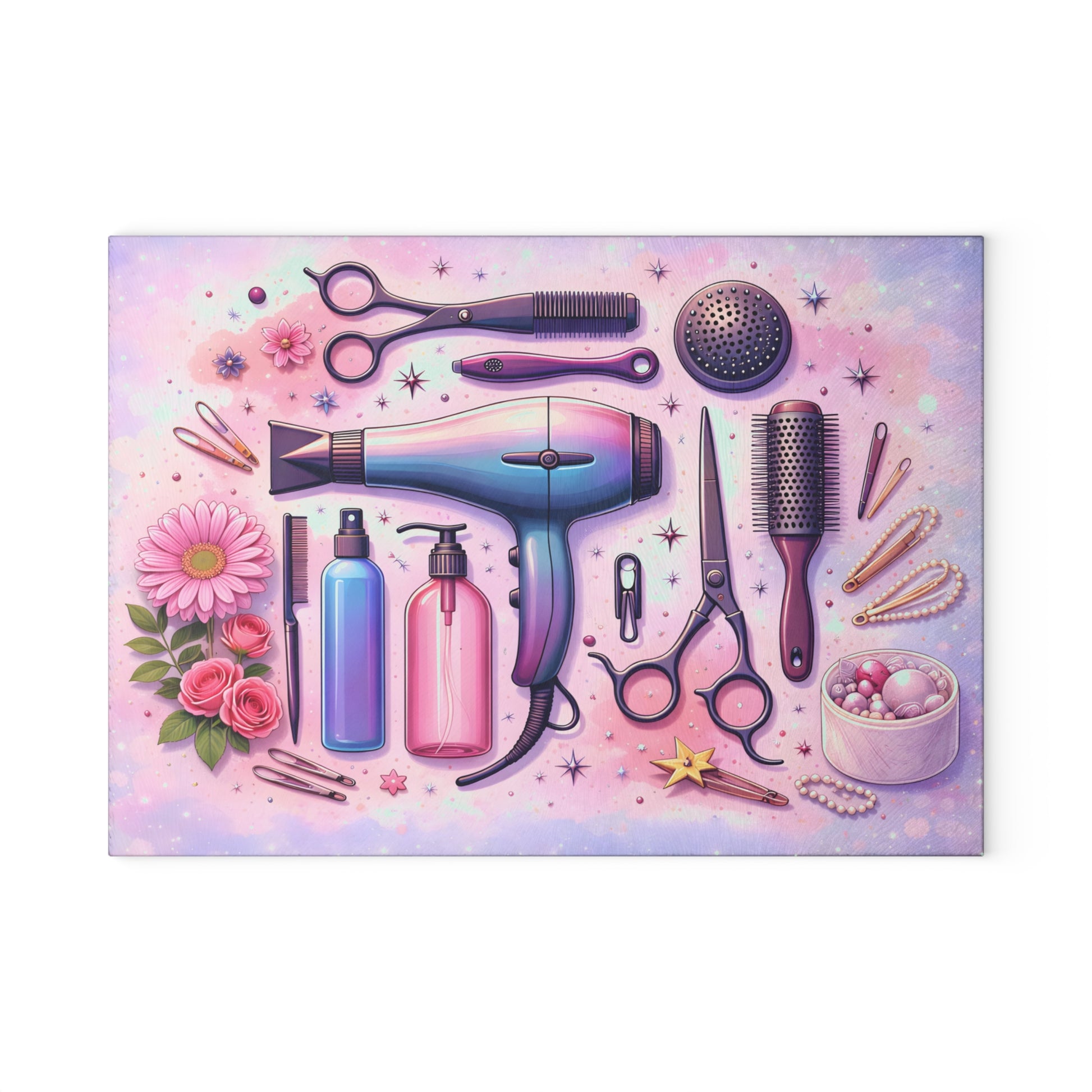 Celebrate creativity, precision, and professional pride with this Shear Perfection Hair Stylist Cutting Board. Designed with elegant illustrated salon tools—including scissors, combs, brushes, and styling essentials—this piece is a stylish nod to the beauty industry. Whether displayed in a salon, used at home, or styled as countertop décor, it adds personality and polish to any space.