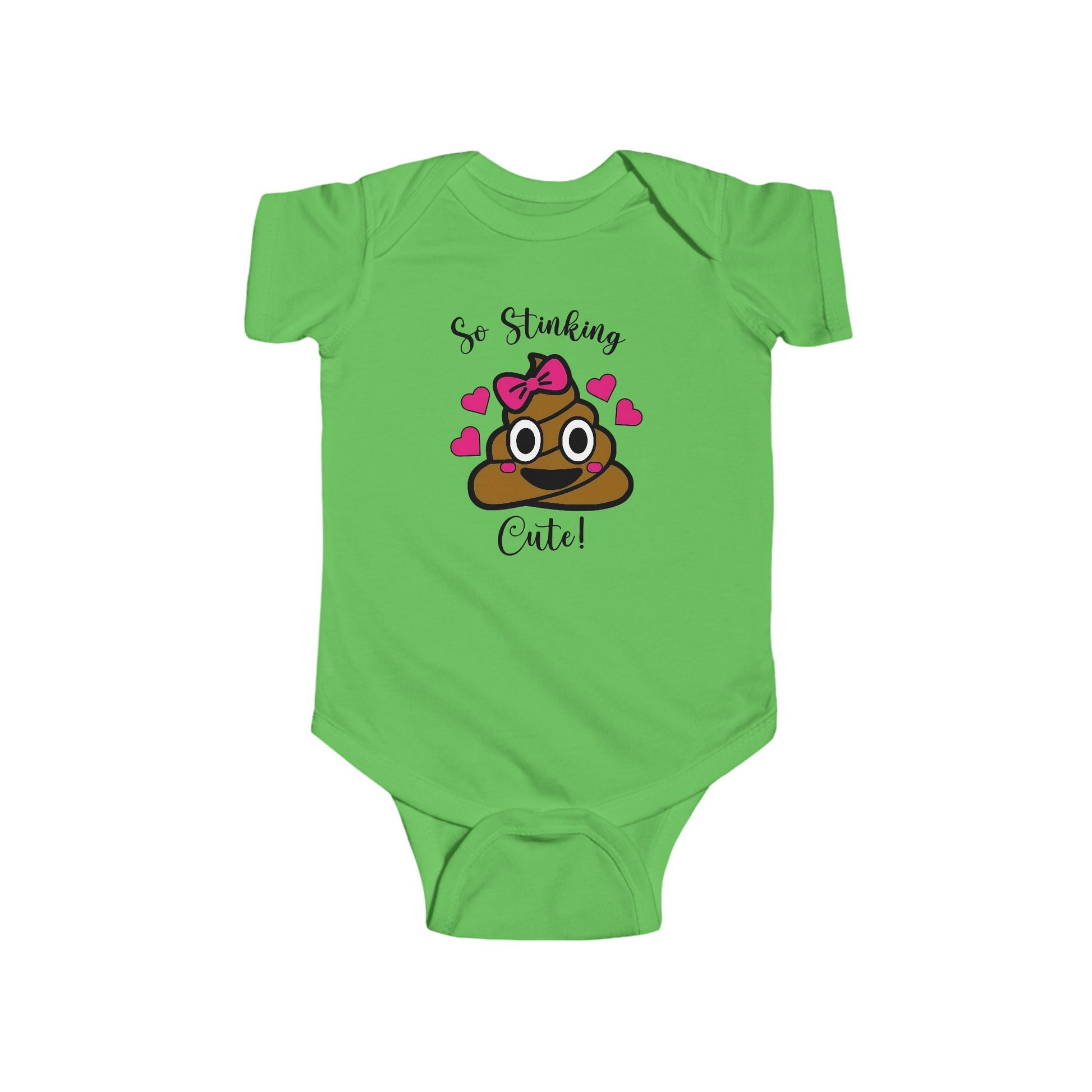 Add a playful twist to your baby girl's wardrobe with this hilarious and absolutely adorable “So Stinking Cute” onesie! Featuring a smiling poop emoji with a pink bow and hearts, this onesie is perfect for giggles, photos, or baby shower laughs. Made from soft, breathable cotton, it keeps your little one comfy while turning heads with cuteness overload!