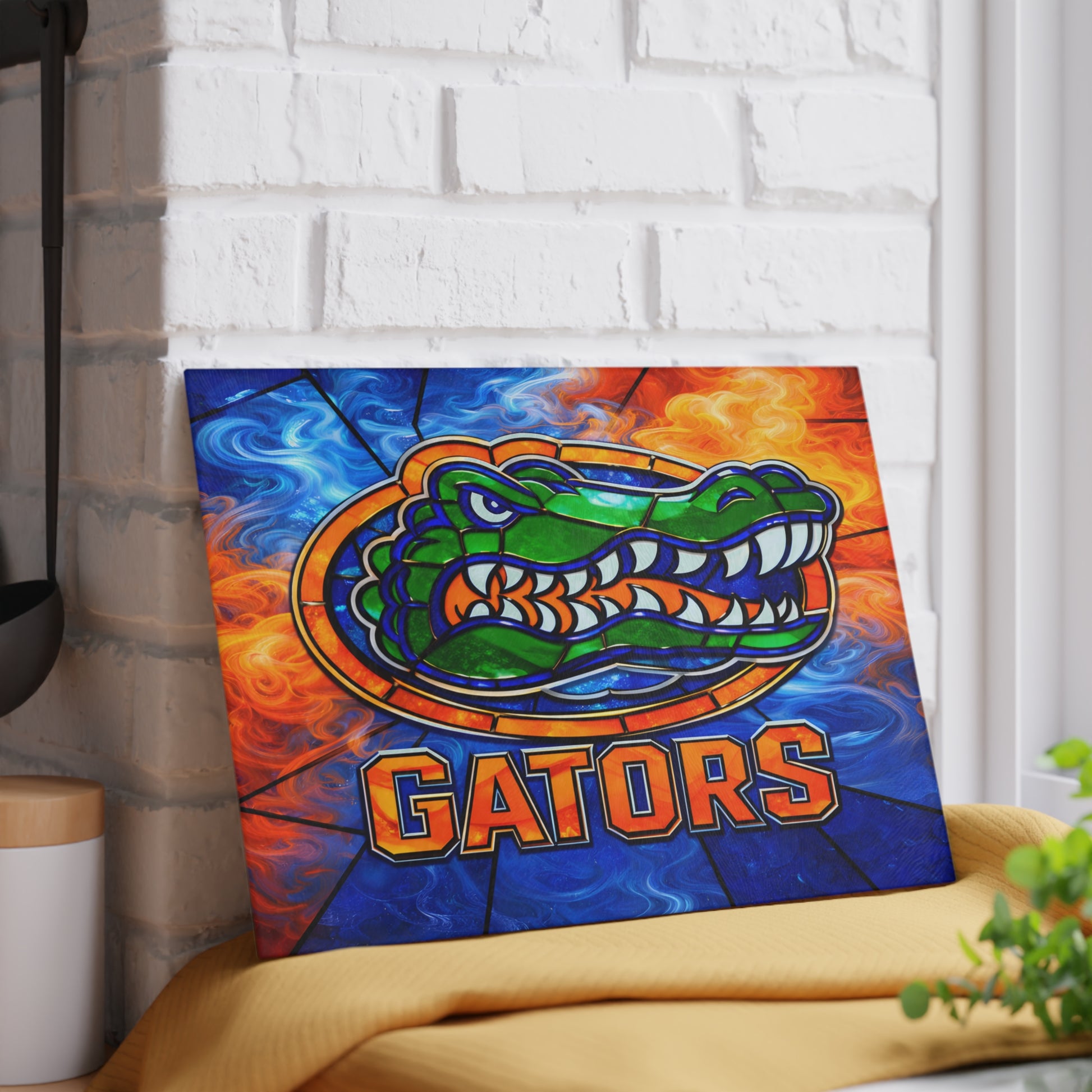 Stained Glass Reptile Glass Cutting Board – Bold Flame & Water Art Kitchen Decor