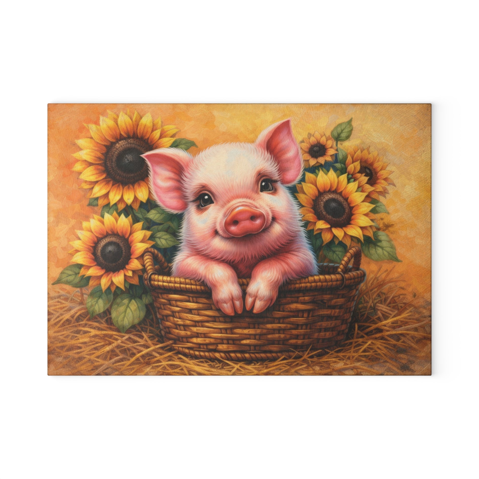 Sunflower Piglet Glass Cutting Board – Whimsical Farmhouse Kitchen Decor